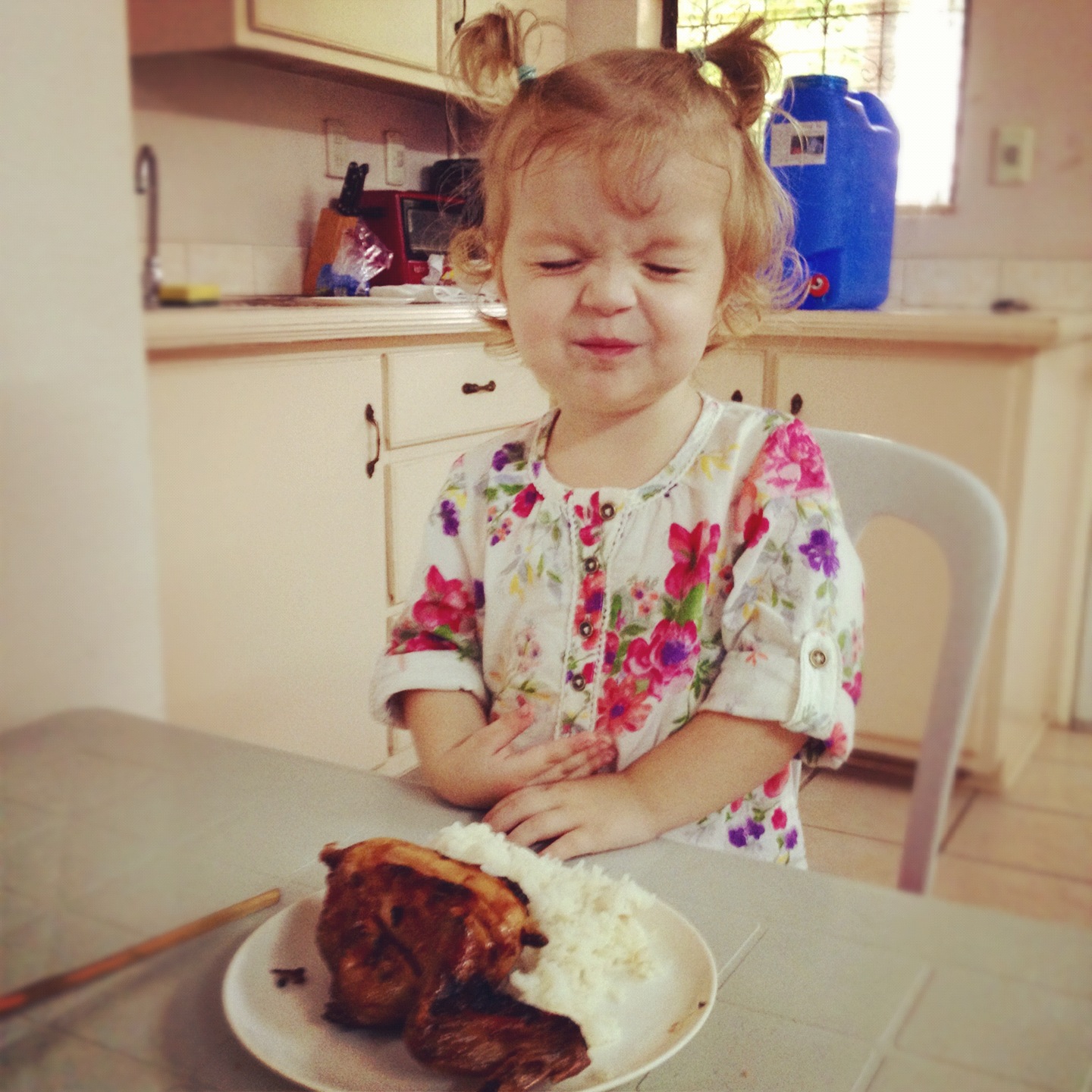 The “Izzy-ness” coming back. One of our favourite meals here is BBQ chicken and rice.