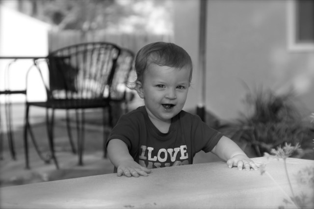| Exploring Grandpa and Grandma’s garden. |