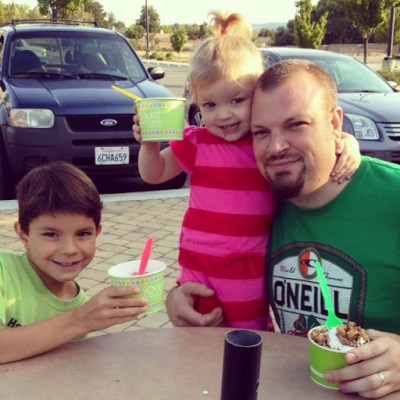 | Enjoying frozen yoghurt with a cousin for the first time! |