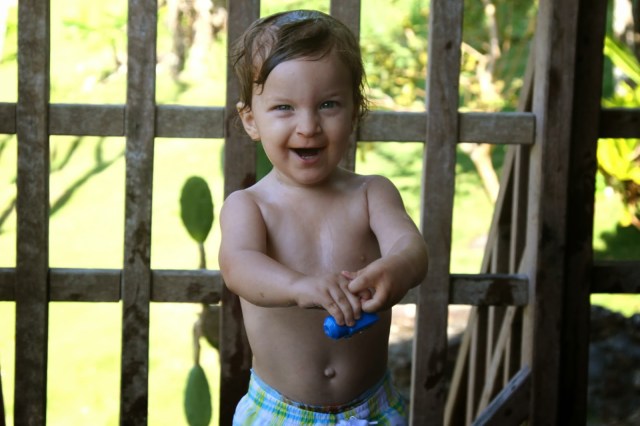 Hot season is here, which means long afternoons inside….unless we fill buckets of water and play on the deck! Always a much better option going by this little man’s face.