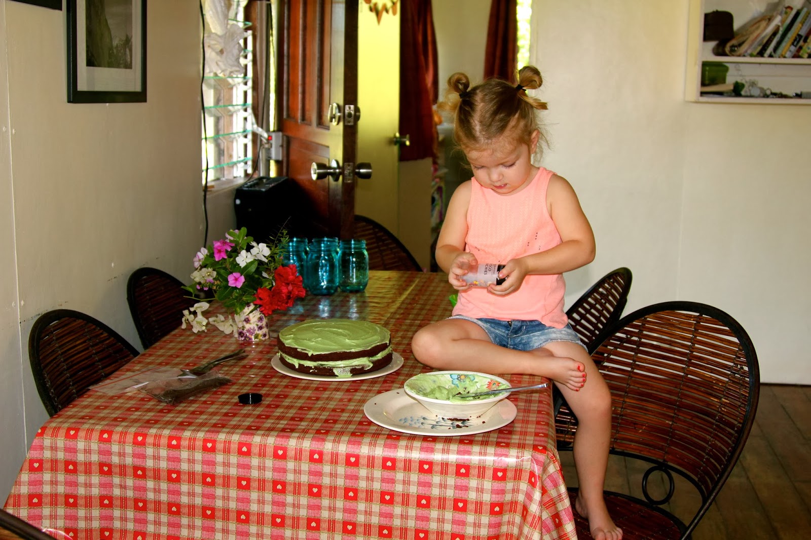 So, as we turned the calendar on Tuesday morning, we thanked God together, and explained to Izzy how God had taken care of her over and over again. We told her of the many prayers that had been answered on her behalf. She took it all in, nodded in agreement, and then said: “Mama, I think then, we should probably bake a cake…and maybe it could be green.” (I think our daughter’s love language may be cake) So, as Danny set off to work on his lessons, I got out the pots and pans to celebrate the goodness of God to our little girl. It seemed both odd, and yet the right thing to do, to be making a cake.