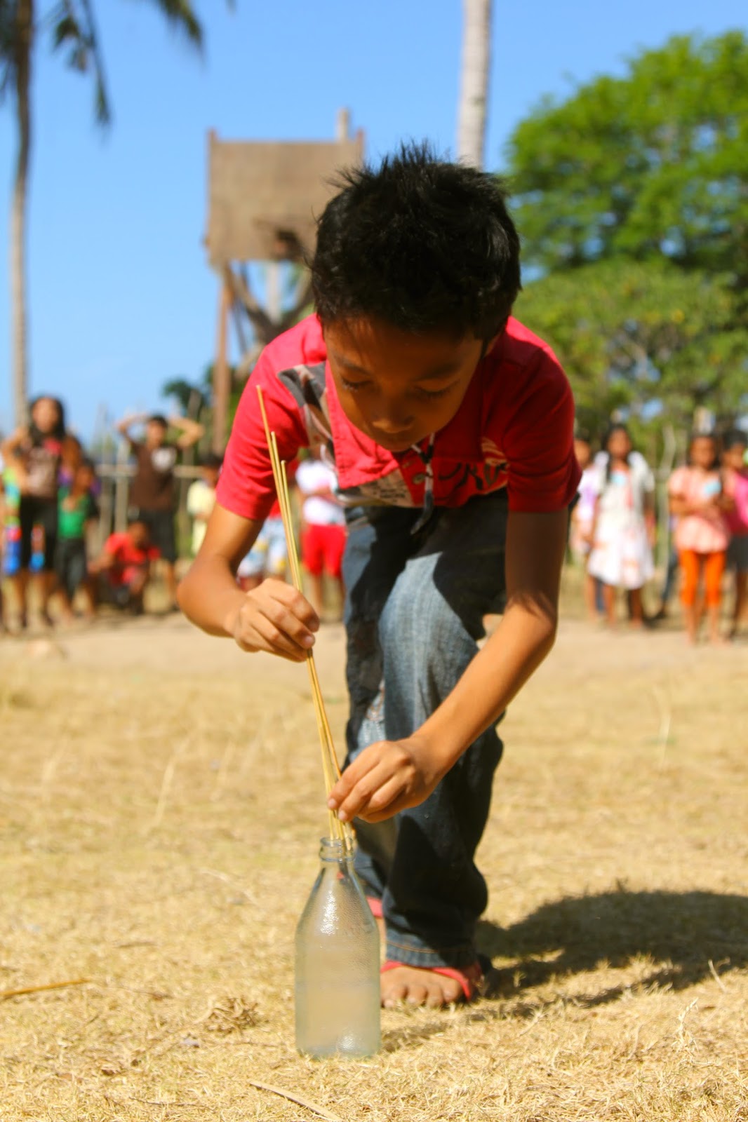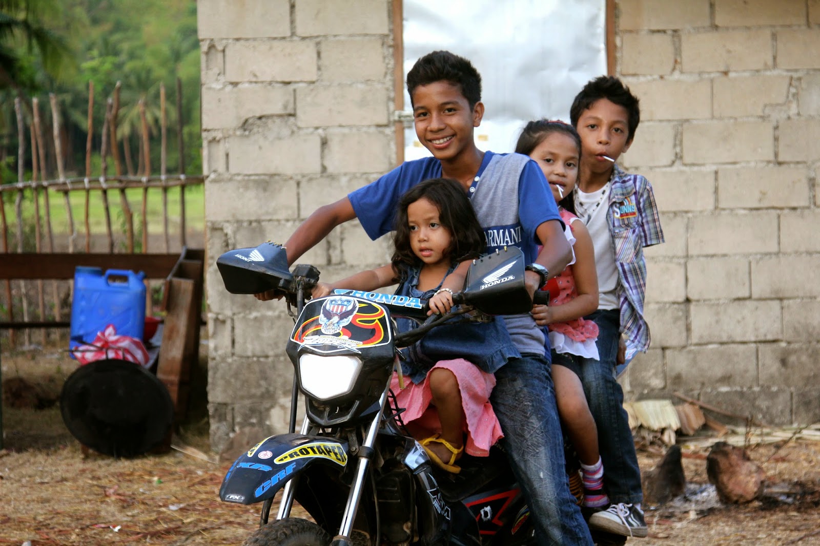 An older brother with his younger sisters, with their house in the background. (Below)
