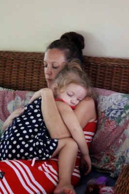 As the sky clouded over and the room fell dark, Izzy had not left my knee and I could feel her little heart racing against mine. She tucked her head in close and didn’t move, didn’t ask any questions, just clung close to her Mama. As I sat, stoking her back, I could feel her relaxing, a few minutes later when I looked down at her face, I was surprised to see she was actually sound asleep. Just minutes before she had been terrified, totally shocked and surprised by the sound of the thunderstorm and now she was fast asleep. What had changed?