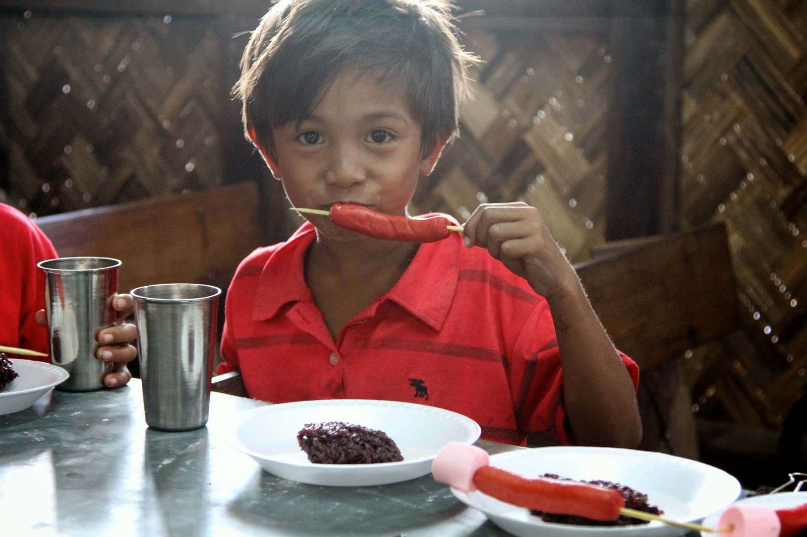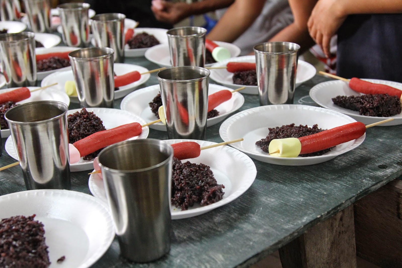 Then it was time for “merienda” (snack time). We had hotdogs and marshmallows on a stick (big favorite here) and some bico. Bico is a sweet, sticky rice dessert made with coconut milk and it is absolutely delicious!