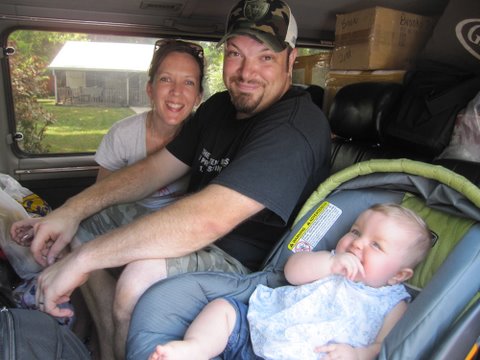 | This is Cathy and Zoe who will soon be joining us here in the village.  The van is loaded up and we are saying goodbyes to our friends on the base. |