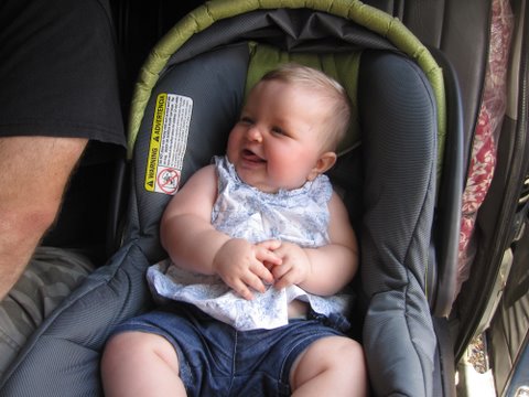 | Baby….check….happy baby….check! She was a trooper on her first trip to the village. 🙂 |